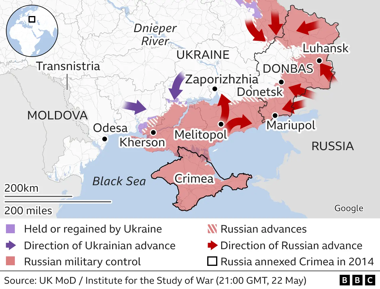 Bripda Rio disebut berada di wilayah Donbass, Ukraina, kawasan yang selama ini dikenal sebagai episentrum konflik Rusia-Ukraina.