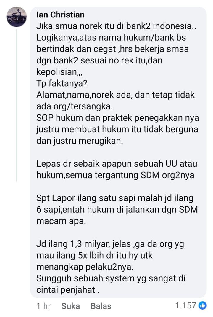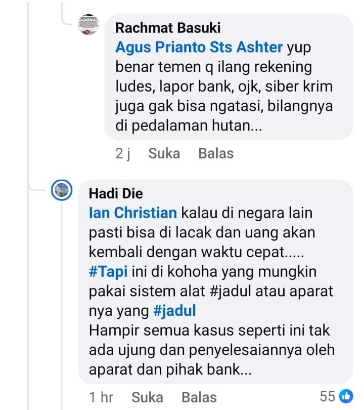 Senin pagi, ia mendatangi bank untuk mencetak rekening koran. Hasilnya mengejutkan: dari saldo Rp 1,3 miliar, hanya tersisa Rp 100 ribu.