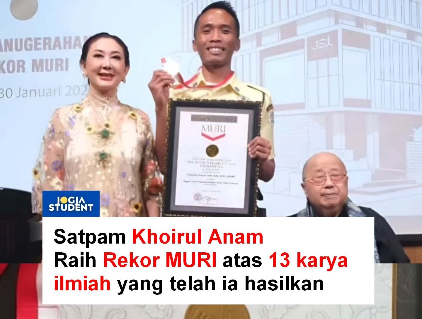 Seorang anggota satuan pengamanan (satpam) bernama Khoirul Anam (28) mencatatkan prestasi tingkat nasional dengan meraih rekor Museum Rekor Dunia Indonesia (MURI) sebagai satpam dengan karya ilmiah terbanyak.