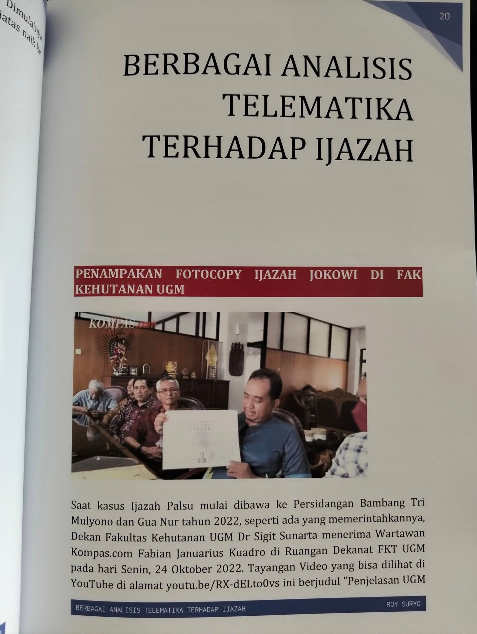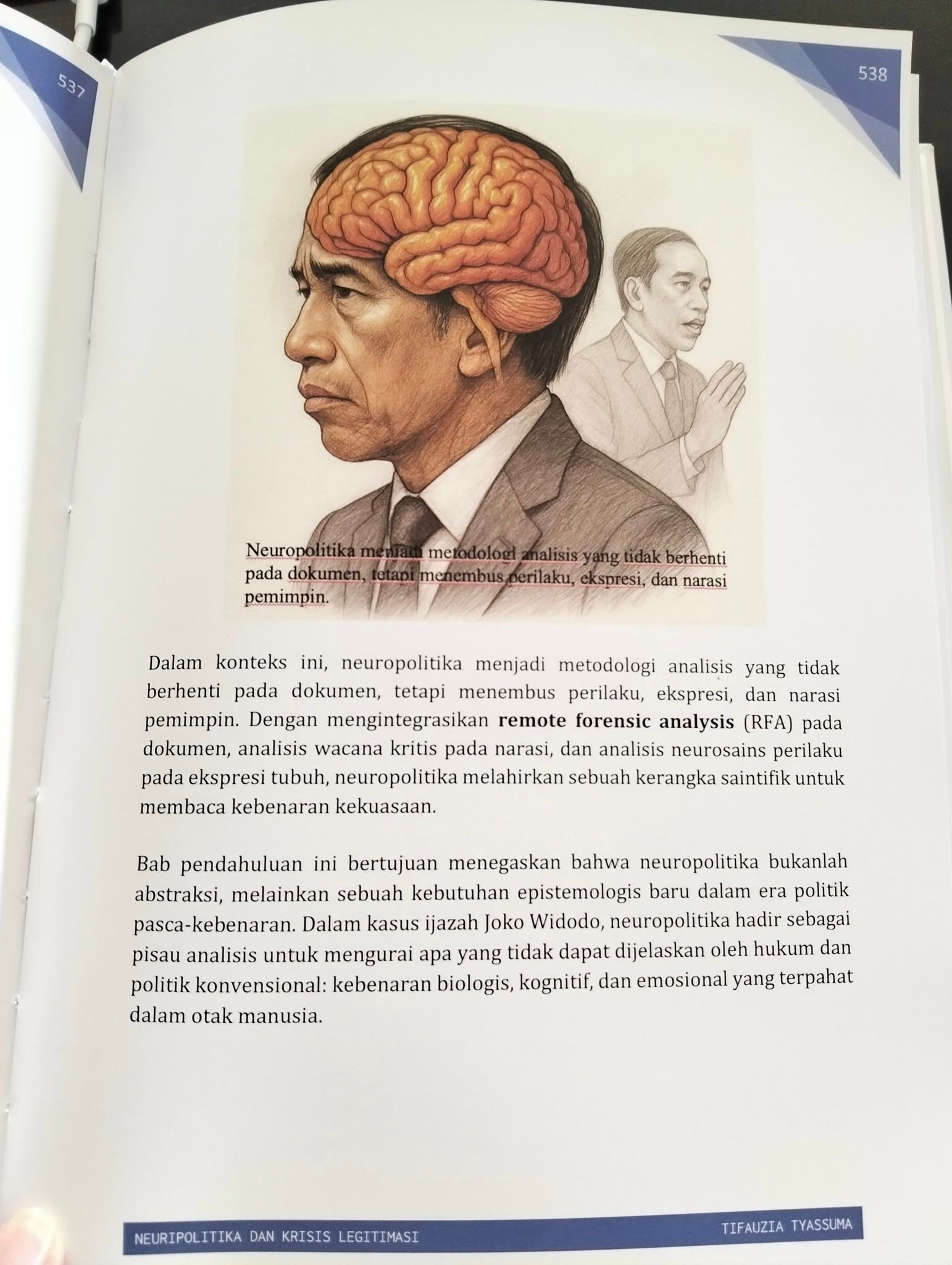 - Tidak ada yang terasa berbeda ketika halaman terakhir yang ditulis Roy Suryo, pindah ke halaman pertama yang ditulis Rismon Sianipar, dan halaman terakhir Rismon, dilanjutkan. Halaman pertama dari Tifauzia Tyassuma mulus saja seakan ditulis satu penulis!