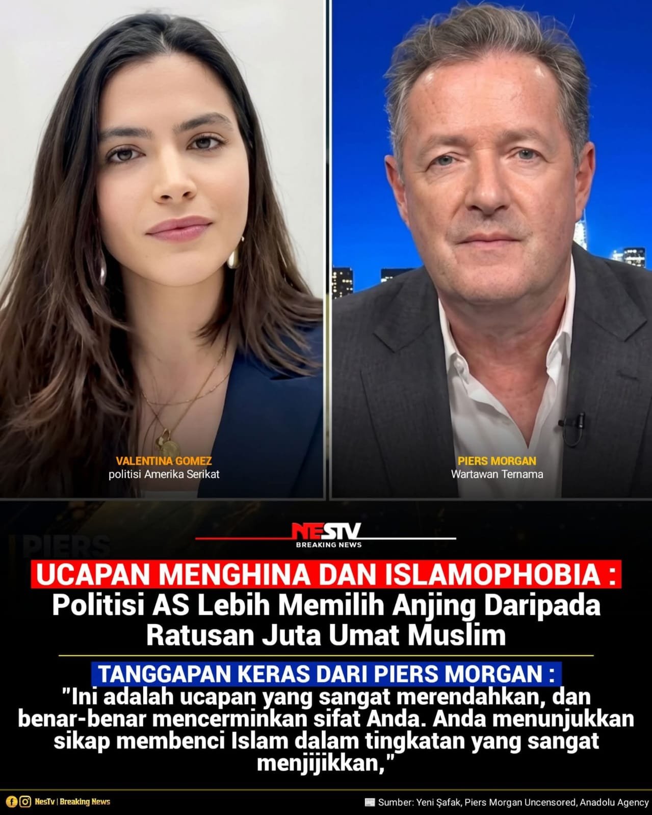 Sebuah pernyataan yang penuh kebencian dan penghinaan dilontarkan oleh politisi asal Amerika Serikat pendukung Trump, Valentina Gomez, saat menjadi bintang tamu dalam acara bincang-bincang yang dipandu oleh wartawan ternama Piers Morgan. Ucapan tersebut memicu kemarahan luas dan kecaman dari berbagai kalangan di seluruh dunia.