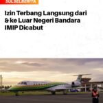 Izin Terbang Langsung dari & ke Luar Negeri Bandara IMIP Dicabut BERITA NASIONAL|Minggu, 30 November, 2025oleh Admin Kementerian Perhubungan (Kemenhub) mencabut izin layanan penerbangan dari dan/atau ke luar negeri