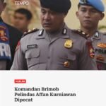 Komandan Brimob Pelindas Affan Kurniawan Dipecat BERITA NASIONAL|Kamis, 4 September, 2025Kamis, 4 September, 2025oleh Admin Sidang Komite Kode Etik Polri (KKEP) menjatuhkan sanksi pemberhentian tidak dengan hormat