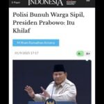 Aparat Repreaif dengan Warga Sipil, Presiden Prabowo: Itu Khilaf BERITA NASIONAL|Selasa, 2 September, 2025Selasa, 2 September, 2025oleh Admin Presiden Prabowo Subianto menyebut anggota kepolisian dapat melakukan kesalahan dalam melaksanakan tugasnya.