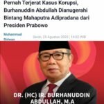 Mantan Napi Koruptor Diberi Penghargaan Tertinggi oleh Presiden Prabowo BERITA VIRAL|Selasa, 26 Agustus, 2025oleh Admin Burhanuddin Abdullah, eks napi koruptor terima penghargaan Bintang Mahaputera Adipradana dari Presiden