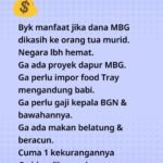 Banyak manfaat jika dana MBG dikasih ke orang tua murid CATATAN|Senin, 22 September, 2025oleh Admin Banyak manfaat jika dana MBG dikasih ke orang tua murid. Cuma 1