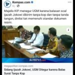 UGM SEMBUNYIKAN BUKTI PENYERAHAN ARSIP IJAZAH JOKOWI KE POLDA IJAZAH JOKOWI|Selasa, 18 November, 2025oleh Admin Pada sidang Komisi Informasi Pusat (KIP) terkait kelengkapan berkas Jokowi di sidang