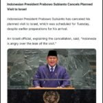 Prabowo membatalkan kunjungan ke Israel karena bocor duluan? INTERNASIONAL|Selasa, 14 Oktober, 2025Selasa, 14 Oktober, 2025oleh Admin Menurut media ME24 – Middle East 24: Presiden Indonesia Prabowo Subianto Membatalkan