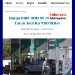 Alhamdulillah, ada kabar baik buat kita semua INTERNASIONAL|Senin, 22 September, 2025Senin, 22 September, 2025oleh Admin 🔵Harga BBM RON 95 di Malaysia Turun Jadi Rp 7.800/Liter Perdana Menteri