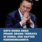 SATU DUNIA KENA PRANK ORANG TERKAYA DI DUNIA, CEK DAFTAR KEBOHONGANNYA INTERNASIONAL|Senin, 5 Januari, 2026Senin, 5 Januari, 2026oleh Admin Reputasi Elon Musk sebagai visioner teknologi kembali dipertanyakan. Sepanjang 2025, janji CEO