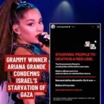 Ariana Grande: “Membiarkan orang kelaparan hingga mati adalah batas yang tak boleh dilanggar. Israel telah melewati batas ini” PALESTINA|Senin, 27 Oktober, 2025oleh Admin Pemenang Grammy, Ariana Grande, mengecam tindakan Israel yang menyebabkan kelaparan di Gaza.