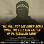 Jubir Brigade Al-Quds Abu Hamza: “Kami tidak akan meletakkan senjata sampai pembebasan penuh tanah Palestina” PALESTINA|Kamis, 23 Oktober, 2025Kamis, 23 Oktober, 2025oleh Admin Abu Hamza, juru bicara baru Brigade al-Quds dari kelompok JIHAD ISLAM, menegaskan