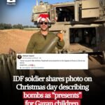 Tentara Israel membagikan foto “Hadiah Bom Natal” untuk anak-anak Gaza PALESTINA|Senin, 29 Desember, 2025oleh Admin Seorang tentara IDF bernama Shmuel Kaplan membagikan foto dirinya dengan topi santa