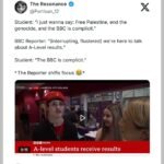Pelajar Inggris diwawancarai BBC tentang Hasil Ujian, dia malah gunakan untuk menyuarakan dukungan Palestina dan menyebut BBC turut terlibat genosida PALESTINA|Minggu, 28 Desember, 2025oleh Admin Pelajar Inggris diwawancarai BBC tentang hasil tes A-Level, kualifikasi pra-universitas berbasis mata