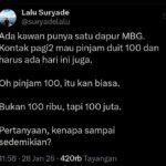 Bikin dapur MBG sampai ngutang Seputar MBG|Kamis, 29 Januari, 2026Kamis, 29 Januari, 2026oleh Admin Bikin dapur MBG sampai ngutang, kenapa begitu? Jawabannya: Vendor-vendor MBG ini sebagian