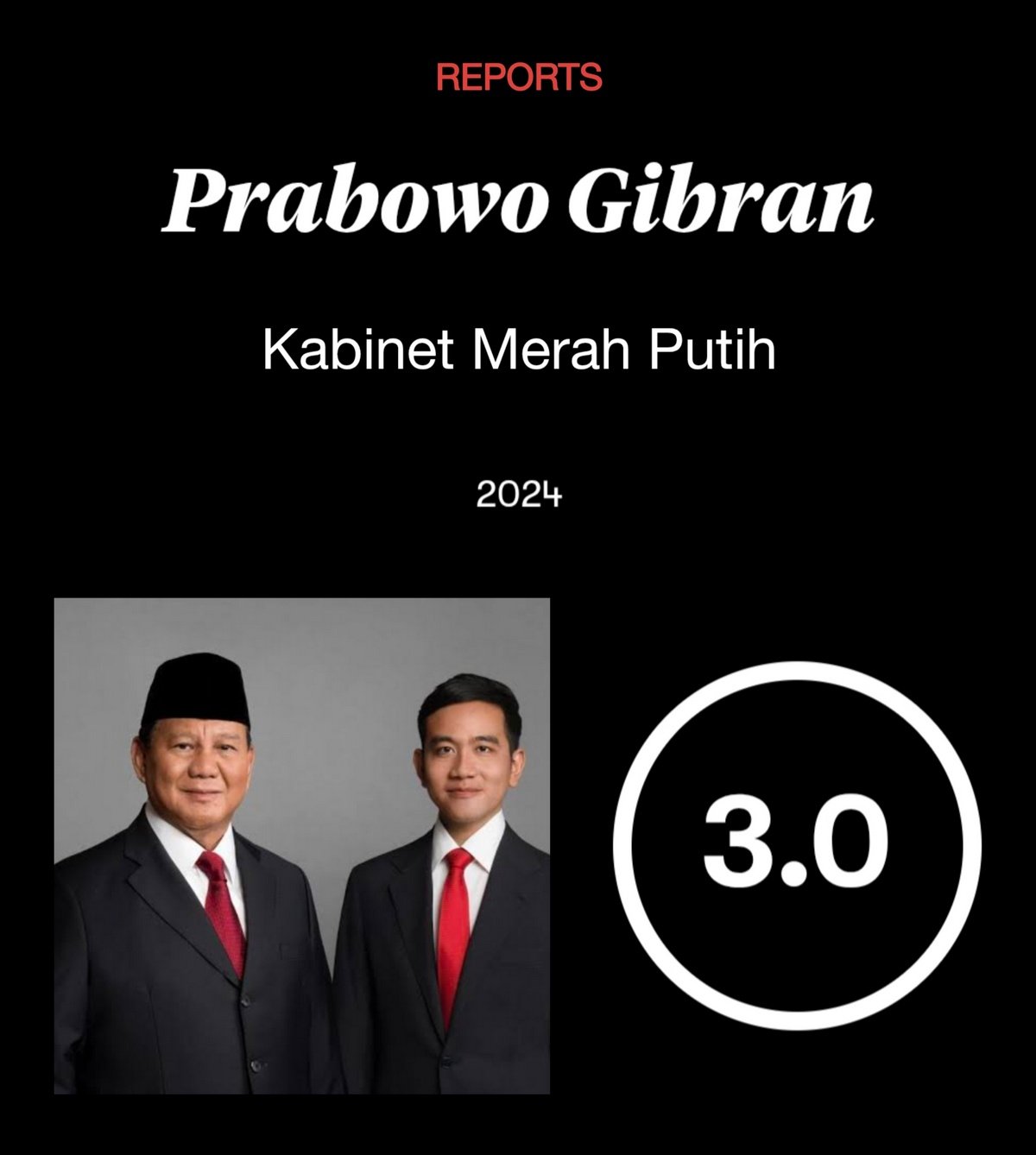 Hasilnya, pemerintahan Prabowo-Gibran hanya mendapatkan skor 3 dari 10.