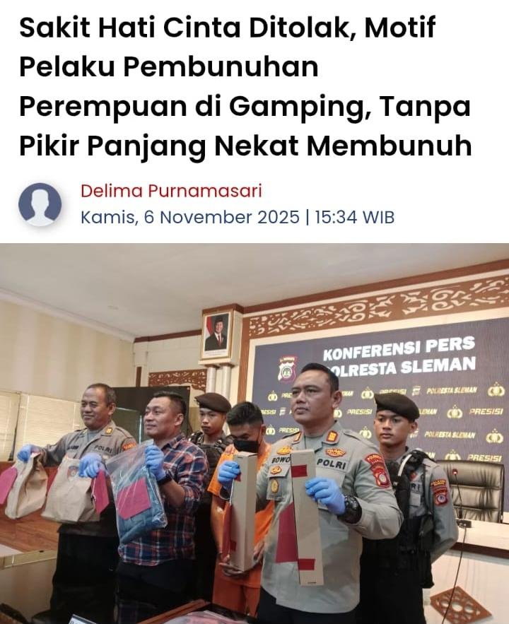 “Pelaku sakit hati karena cintanya ditolak. Dia ingin hubungan tetap berlanjut, tapi korban menolak,” ujar Kasat Reskrim Polresta Sleman, AKP Matheus Wiwit saat jumpa pers, Kamis (6/11/2025).