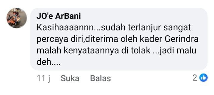 “Dia merasa punya power yang sangat tinggi, akhirnya masuk ke Gerindra, itu nanti malah merusak. Oleh karena itu, saya sangat tidak setuju, karena level relawan dan partai berbeda,” tegasnya.