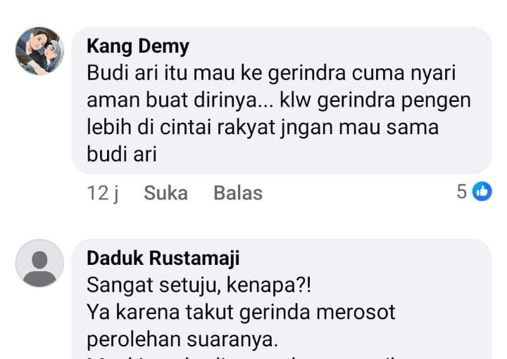 “Kalau nanti Budi Arie masuk, bisa merusak tatanan partai. Karena dia sudah punya pola pemikiran yang berbeda dengan AD/ART Partai Gerindra,”