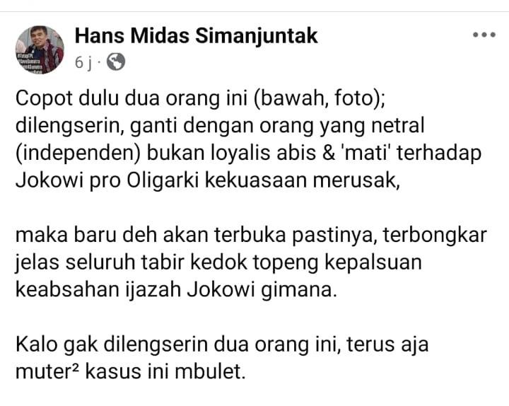 Baidewe jika pun ijazah Jokowi emang terbukti palsu –setelah kedua orang ini bisa turun (tercopot), ya tentu ngak akanlah dapat membuat chaos (kacau balau) Negeri ini; ngak akan juga memperpanjang kasus ini sampai kiamat.