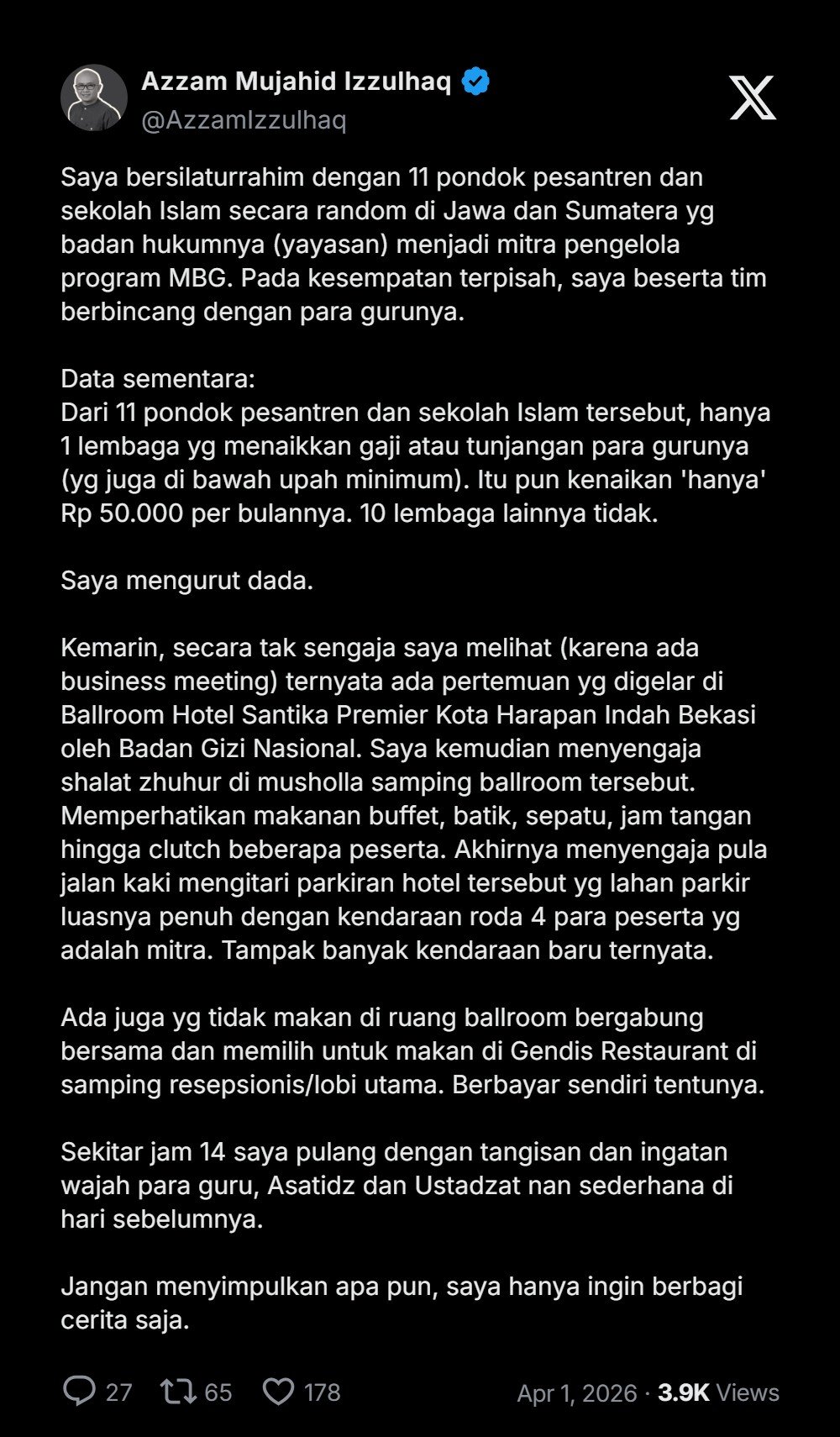 Penuturan Azzam Mujahid Izzulhaq (Entrepreneur dan aktivis muslim):