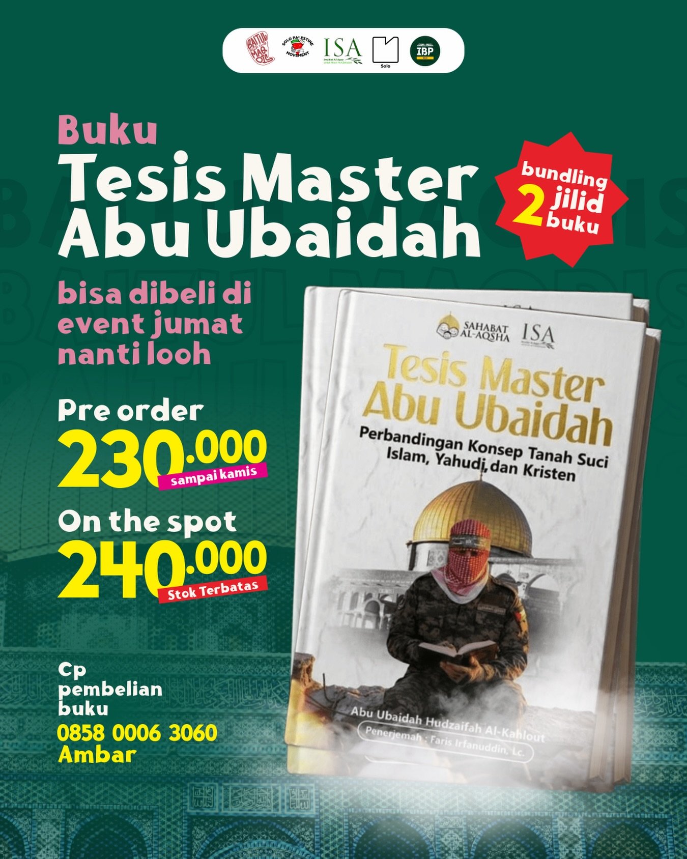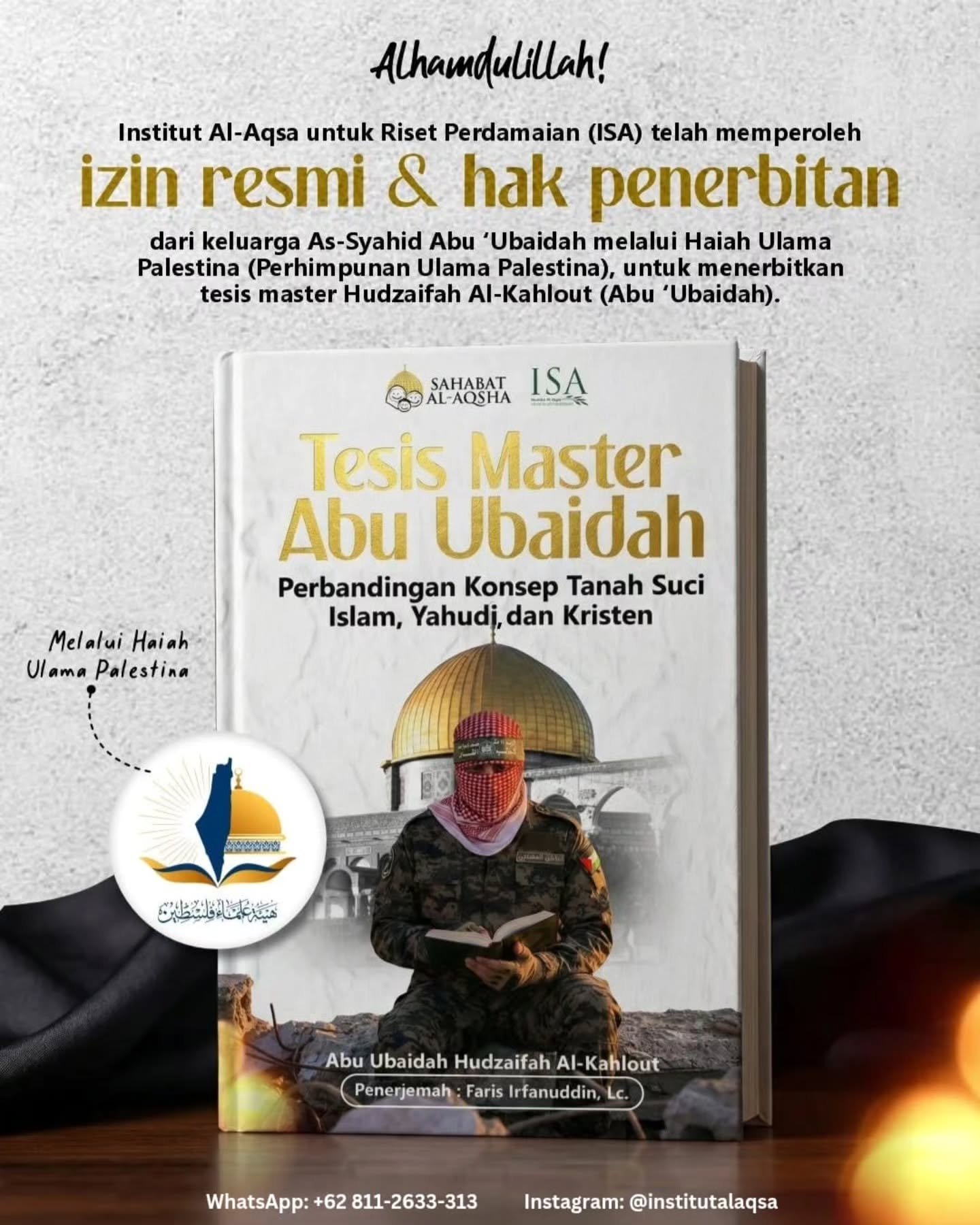 Buku Tesis Master Abu Ubaidah ini membedah konsep Islam, Yahudi, dan Kristen tentang Tanah Suci, serta bagaimana akidah itu membentuk sikap, kebijakan, dan perilaku di atasnya.