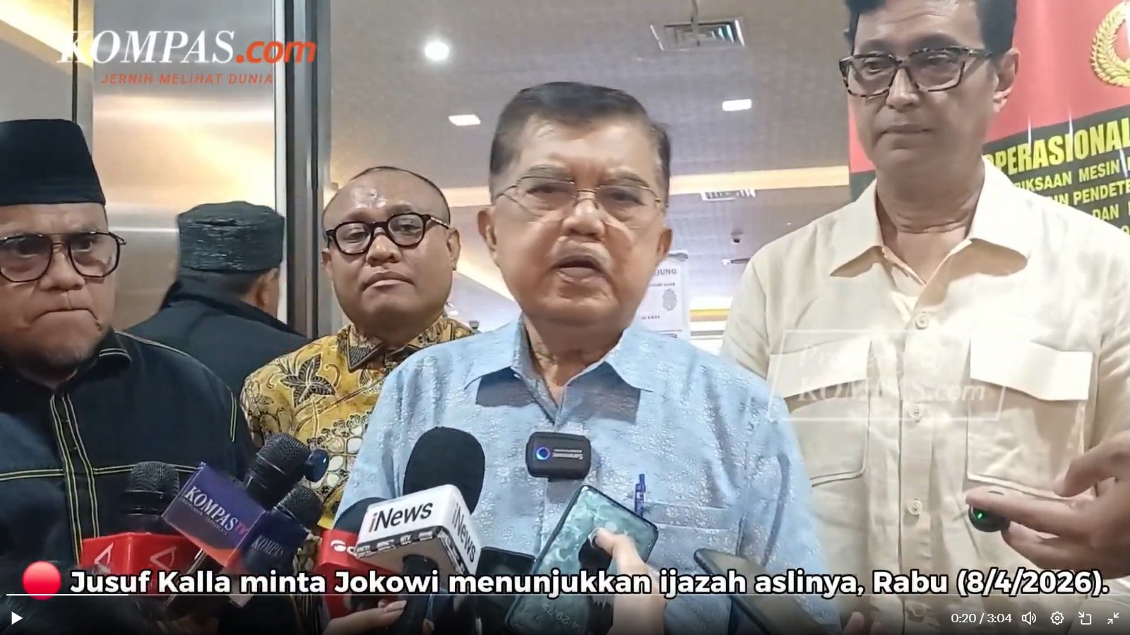 “Pak Jokowi yakin bahwa punya ijazah asli. Sebenarnya untuk kita stop ini perkara dengan cara tinggal Pak Jokowi memperlihatkan ijazahnya yang asli,” kata Kalla, dikutip dari tayangan Kompas TV.
