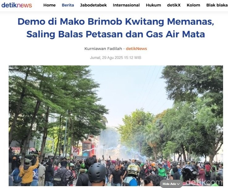 Seperti diketahui, massa aksi kembali mendatangi Markas Satuan Brimob Polda Metro Jaya di Kwitang, Jakarta Pusat. Massa yang sempat bubar sebelum pukul 12.00 WIB kembali datang siang hari ini.
