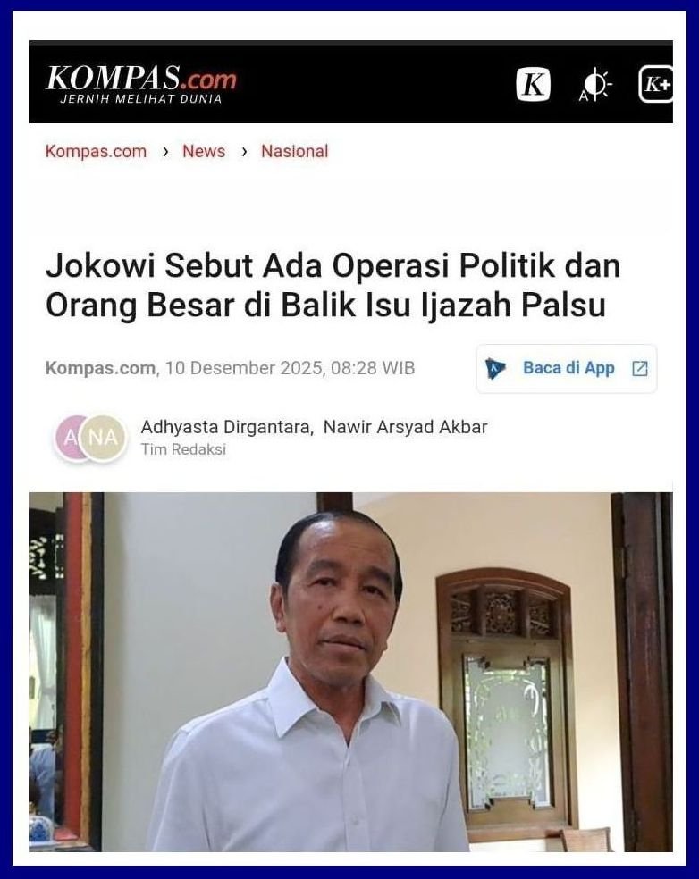 Jokowi kembali mengulang rumor orang besar di balik kasus ijazahnya saat wawancara eksklusif Kompas TV awal Desember lalu. Tapi saat ditanya siapa orangnya, Jokowi menjawab seolah semua orang sudah tahu siapa itu. Agaknya di kepala para pendukung Jokowi, arahnya tetap pada SBY dan mungkin juga Megawati.