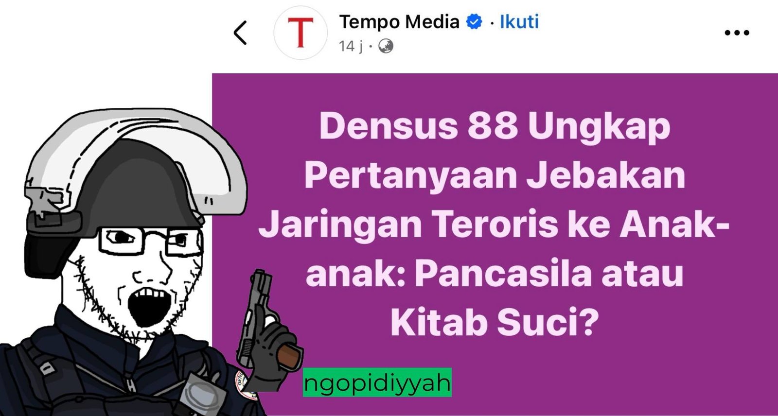 - Detasemen Khusus Antiteror Polri atau Densus 88 mengimbau orang tua untuk mengecek ponsel anak guna menghindari paparan paham radikalisme.