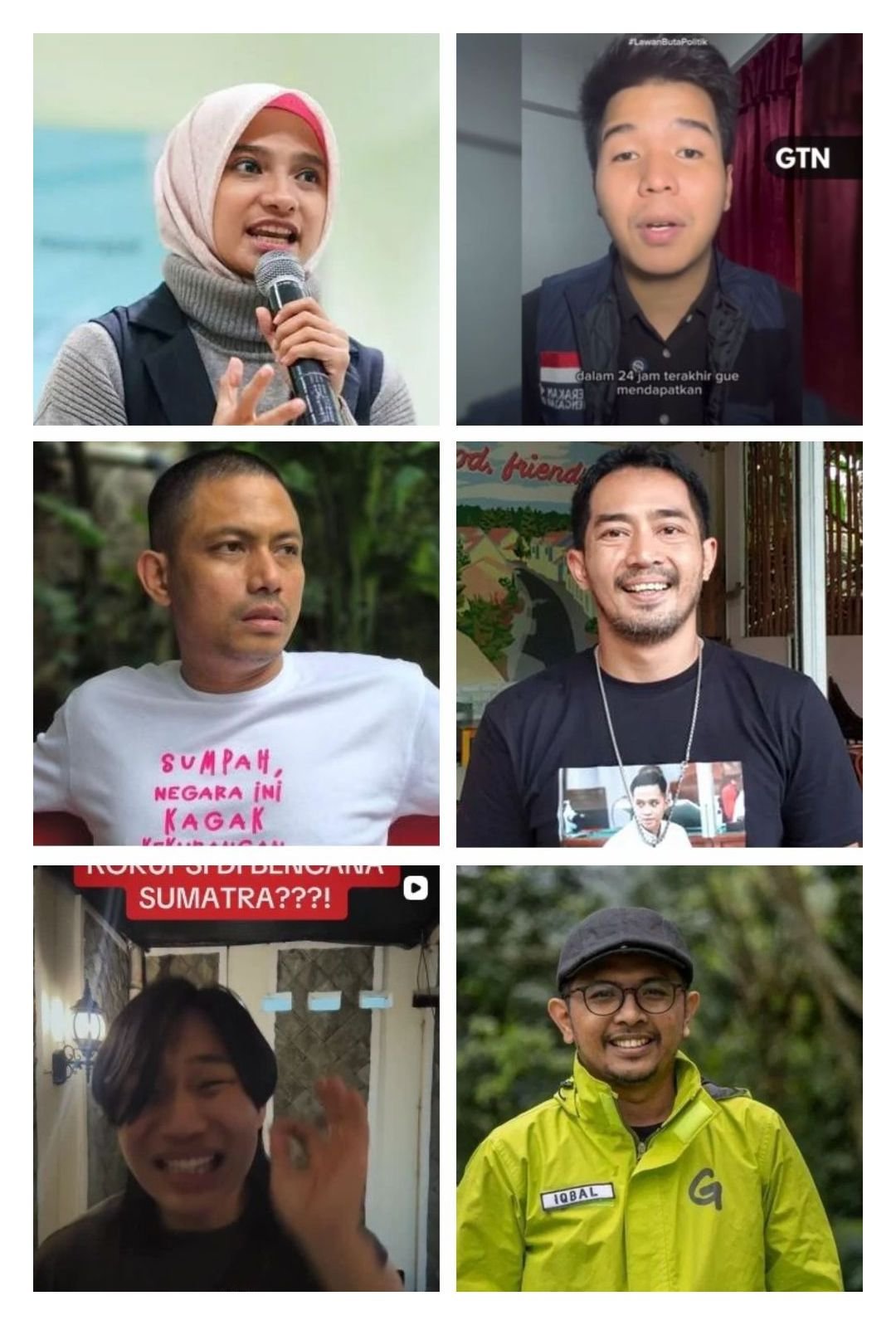 Ini deretan influencer hingga aktivis mengalami teror dari orang tak dikenal. Mulai dari Peretasan alat elektronik, order fiktif dari platform online yang mengatasnamakan mereka, ancaman kpd keluarga terdekat, pengiriman bangkai ayam, telor busuk, kaca mobil pecah di lempar batu, kaca mobil di coret pylox, hingga rumah di lempar b0m m0lot0v.