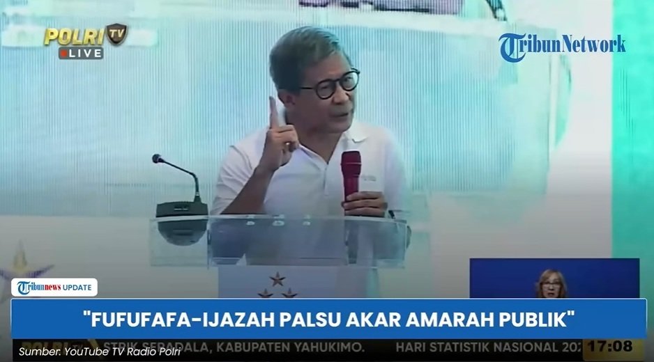 Dalam kesempatan ini, akademisi sekaligus pengamat politik Rocky Gerung menyinggung isu Fufufafa yang menyeret Wakil Presiden Gibran Rakabuming Raka dan soal ijazah palsu mantan Presiden Joko Widodo di hadapan para petinggi Polri.