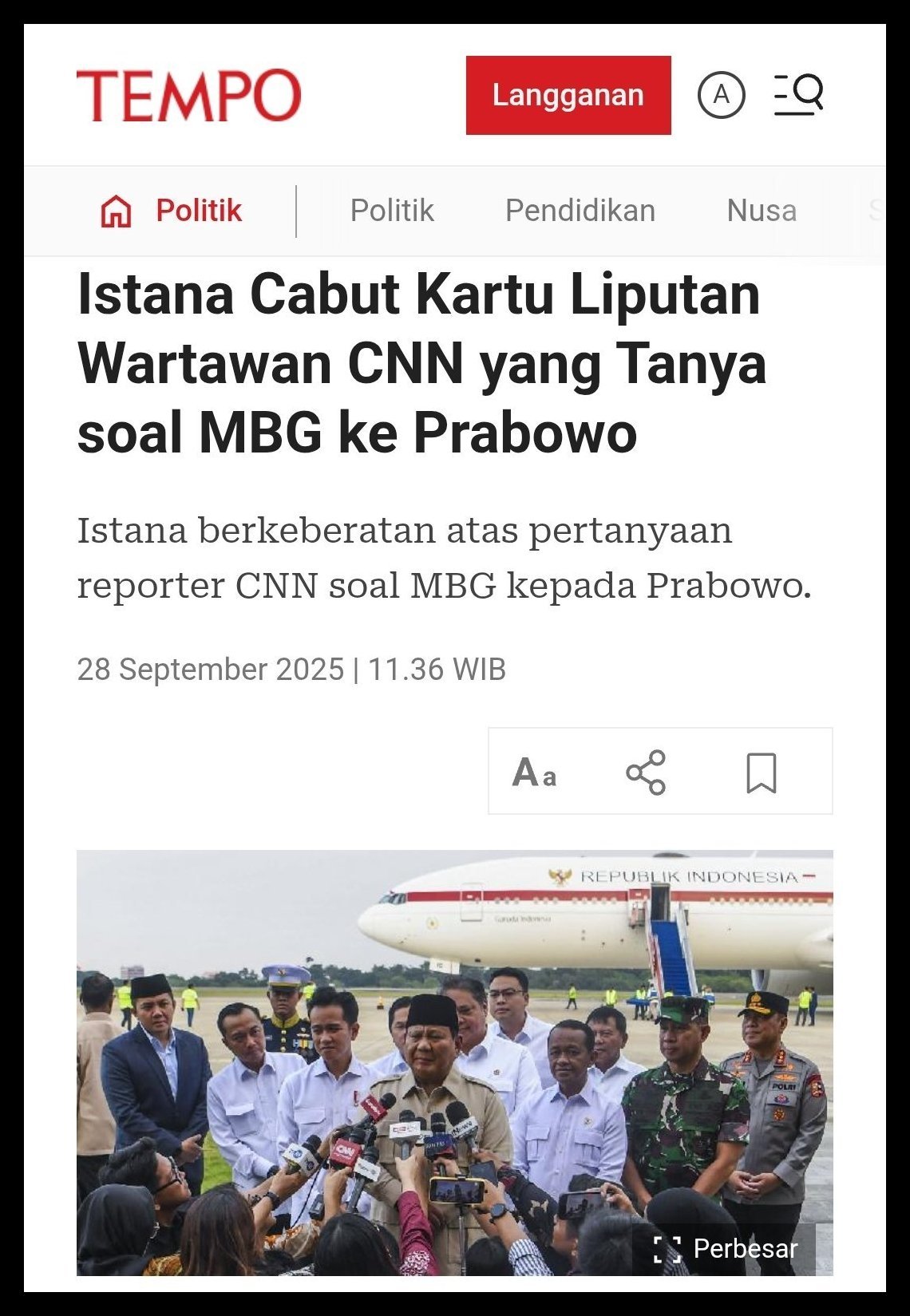 Presiden ditanya wartawan CNN Indonesia tentang program MBG dibilang “di luar konteks” oleh Biro Pers dan kartu liputan istana wartawannya dicabut.