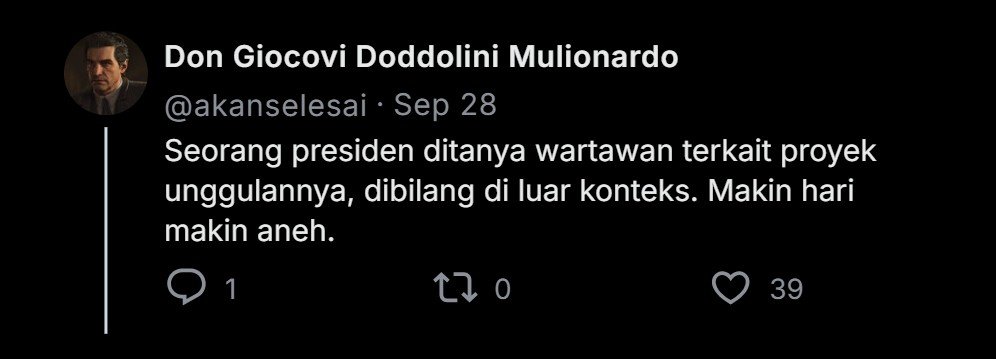 Seorang presiden ditanya wartawan terkait proyek unggulannya, dibilang di luar konteks.