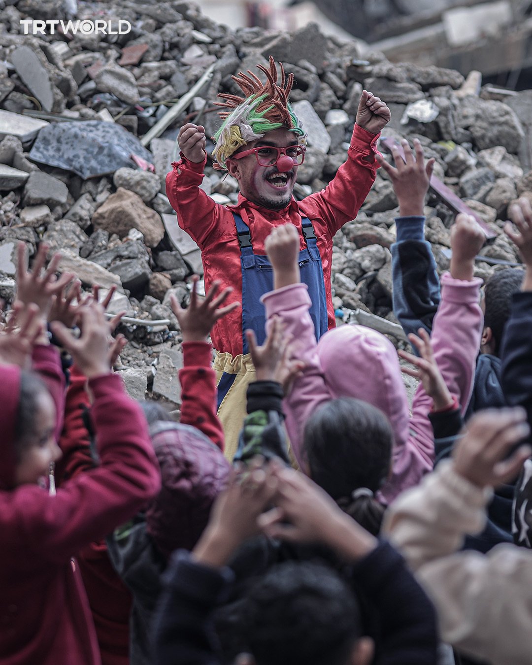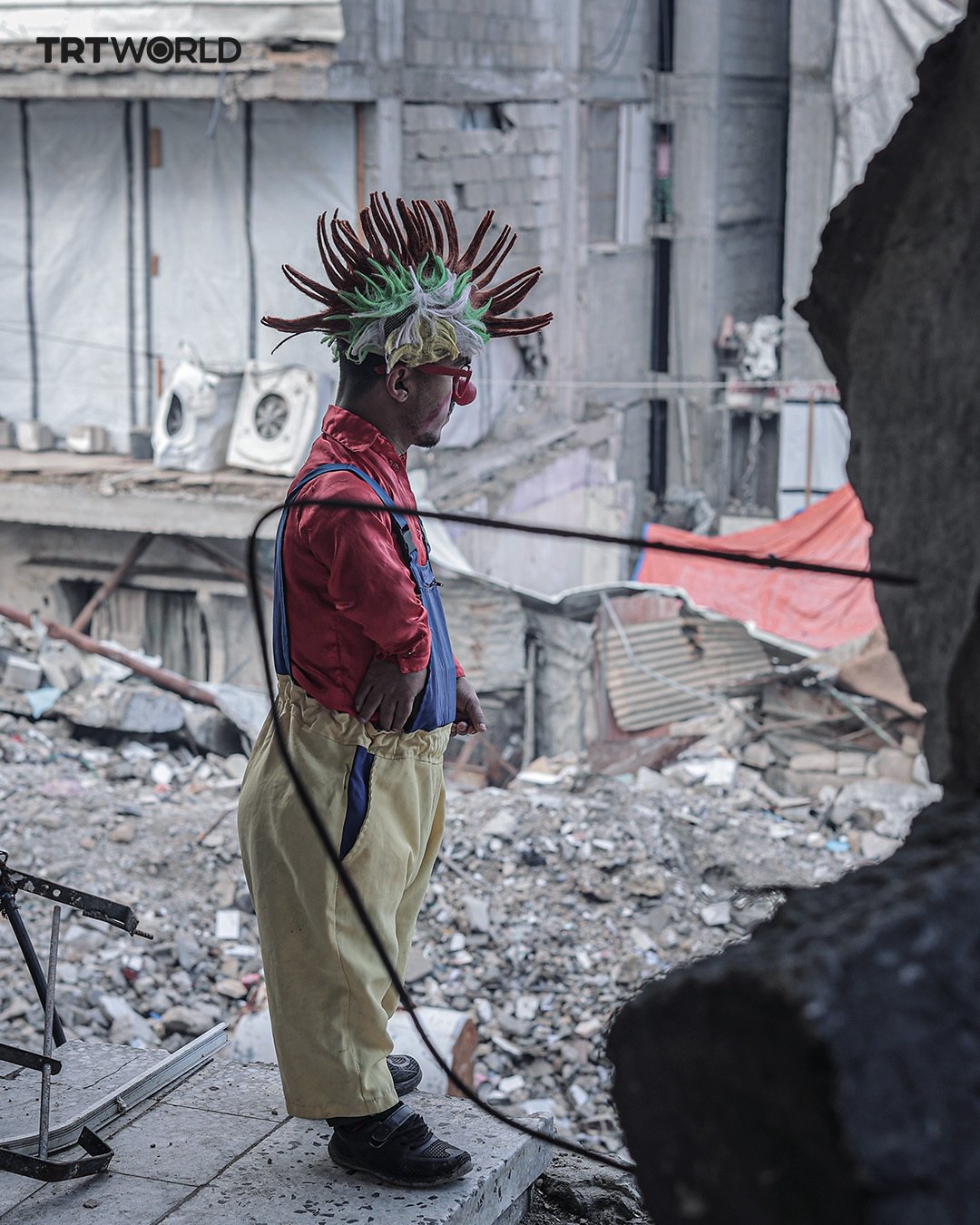Namun di tengah kehancuran itu, ia menjadi sukarelawan sebagai badut, berpegang teguh pada kehidupan dengan membawa tawa dan kegembiraan sesaat kepada anak-anak yang telah mengalami terlalu banyak kehilangan.