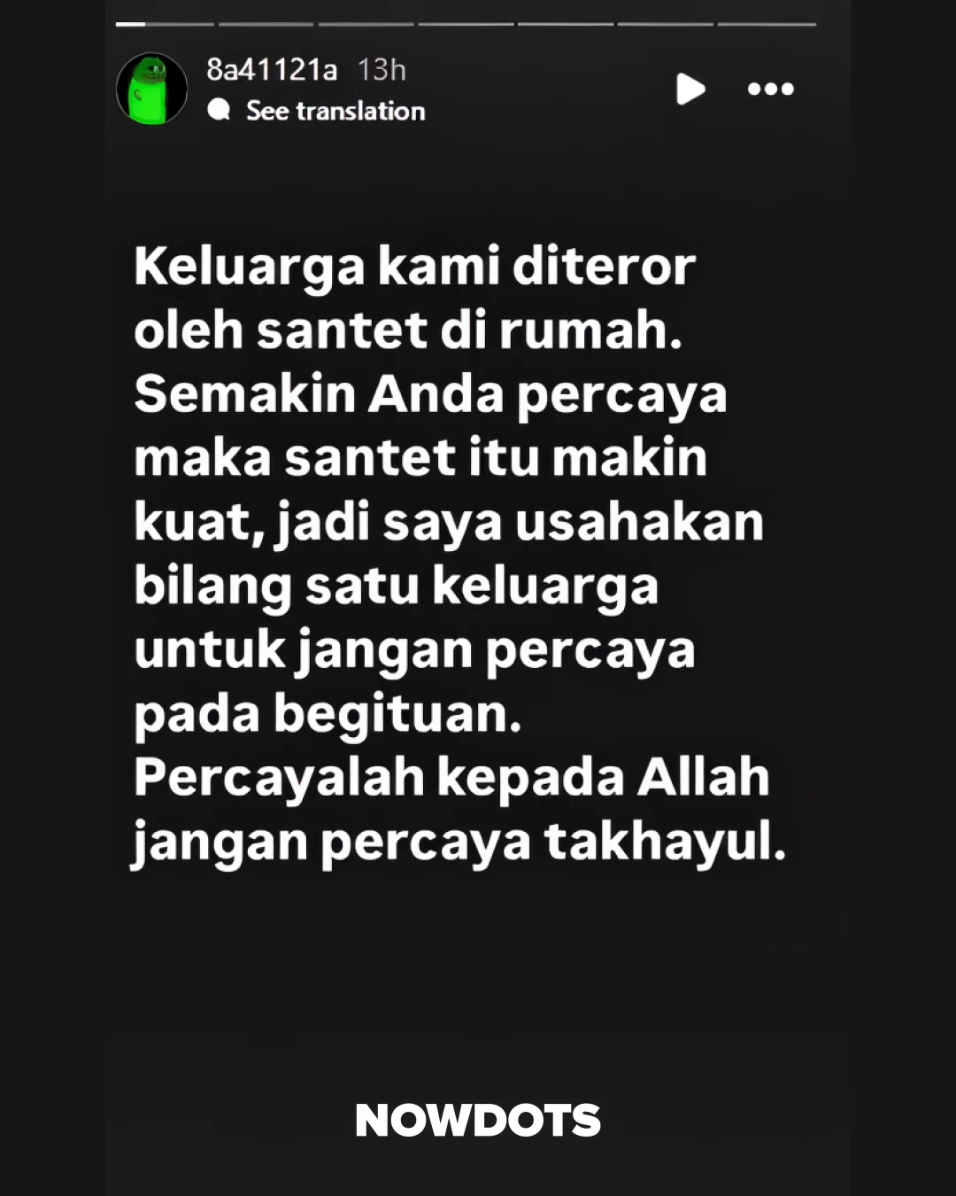 Yudo Sadewa, putra Menkeu, mengungkapkan melalui akun Instagram pribadinya @8a41121a bahwa keluarganya mengalami teror mistis di rumah. “Keluarga kami diteror oleh santet di rumah,” tulisnya.