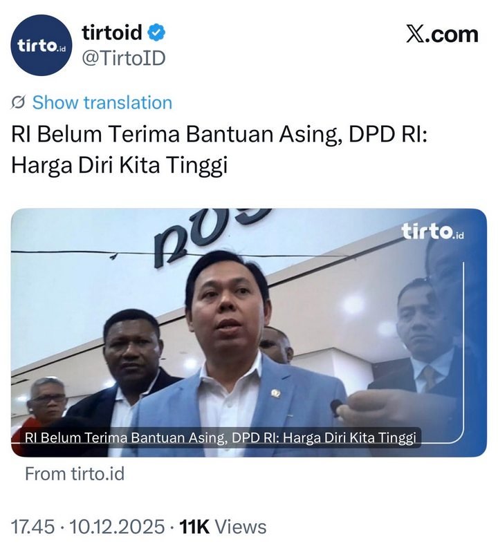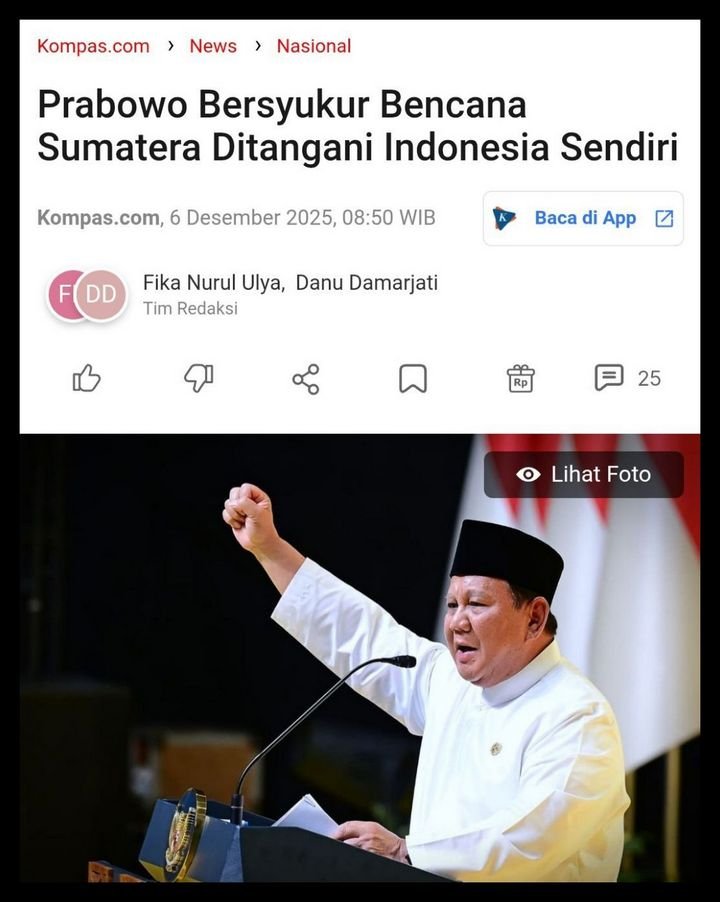 Meskipun sudah banyak tawaran, Presiden Prabowo Subianto percaya bahwa pemerintahannya sanggup menangani bencana banjir Sumatra tanpa bantuan pihak luar.