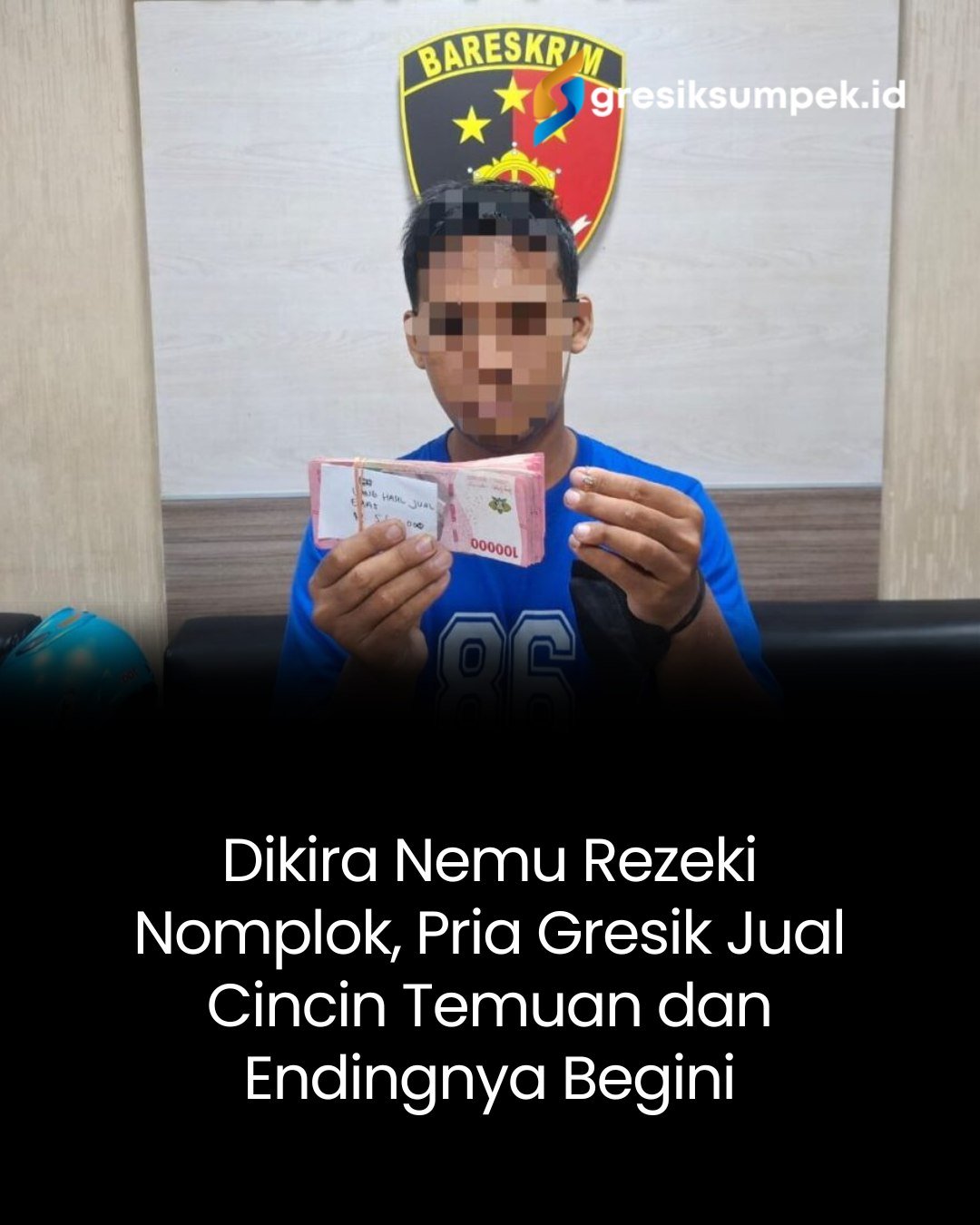 Seorang pria asal Desa Prambangan, Kecamatan Kebomas, Gresik, diringkus Unit Resmob Satreskrim Polres Gresik setelah mengambil dan menjual dua cincin emas yang tertinggal di toilet SPBU Desa Suci, Kecamatan Manyar.