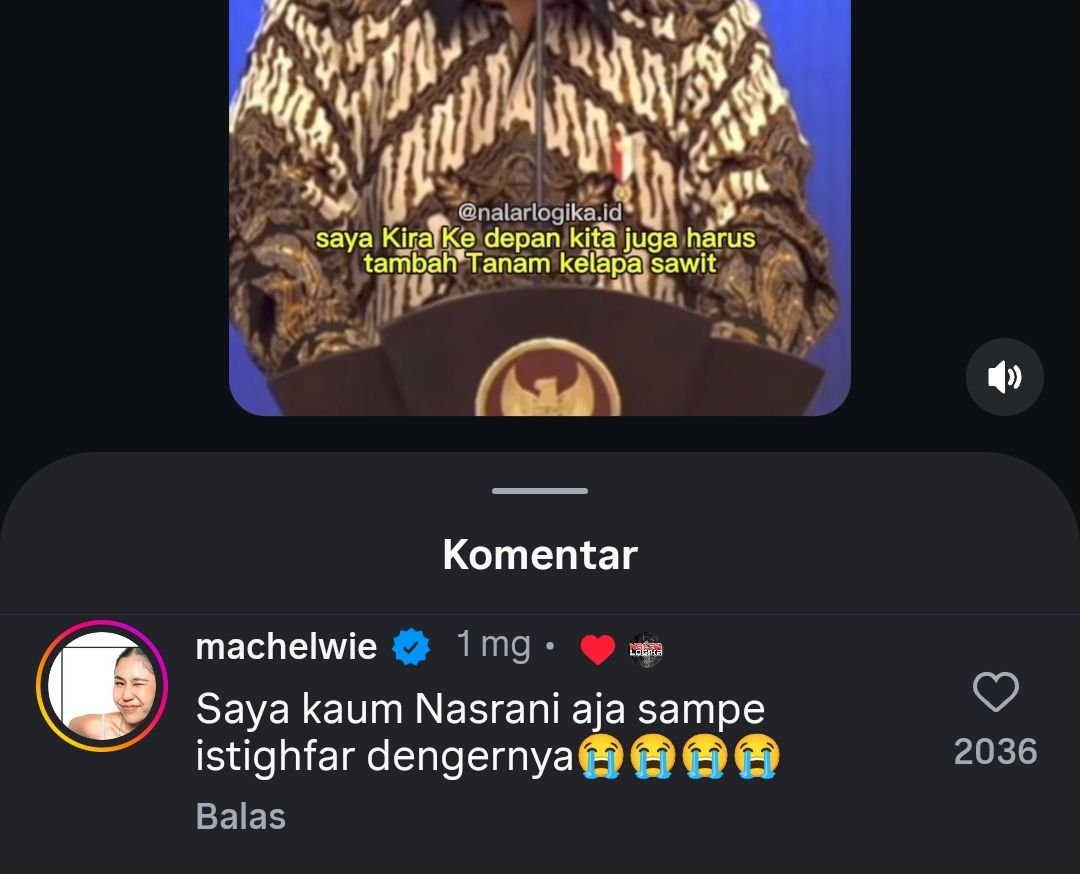 “Saya kaum Nasrani aja sampe istighfar dengernya ðŸ˜ðŸ˜ðŸ˜ðŸ˜,” ujar mbak @machelwie.