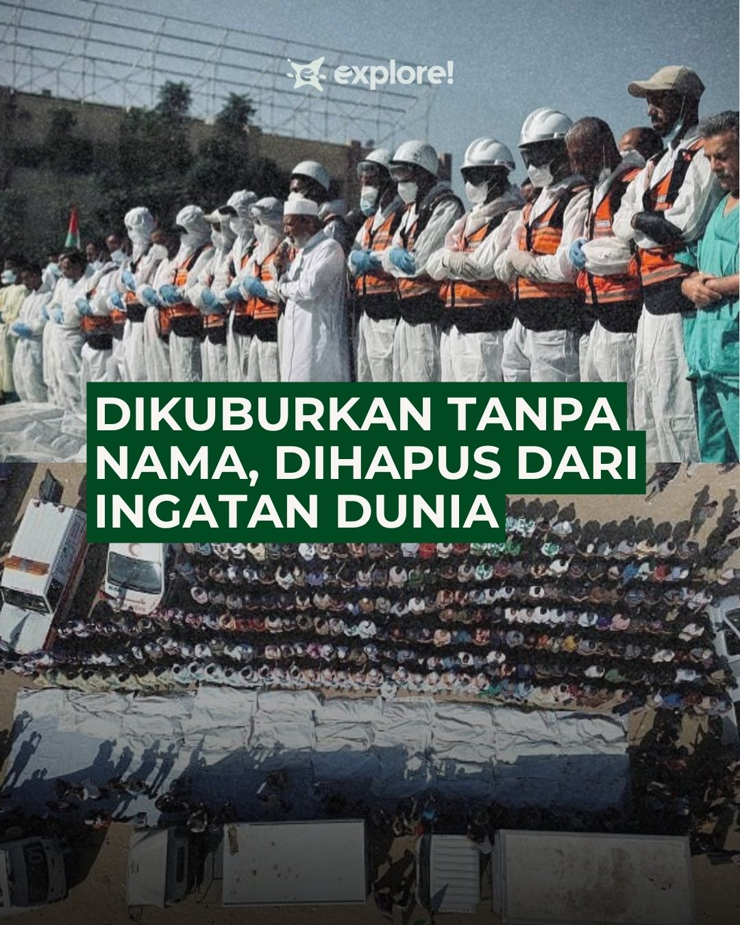 Namun, di saat para pelaku kejahatan kemanusiaan menjadikan manusia sekadar angka, cerita-cerita mereka pun hilang, meninggalkan tubuh yang bisu sebagai saksi dari kekejaman agresi zionis israel dan upaya penghapusan identitas.
