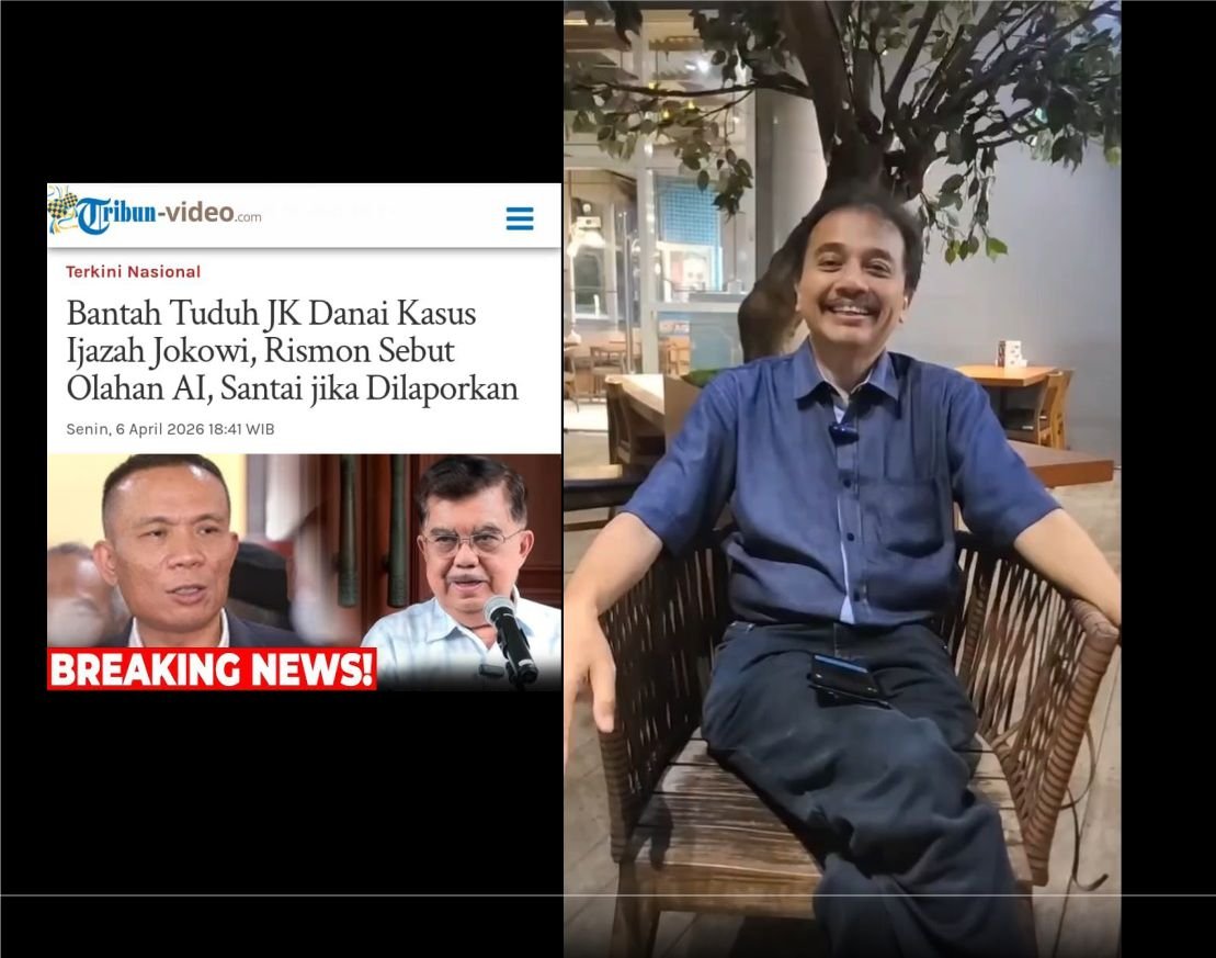 “Mari kita dukung Pak Jusuf Kalla yang melaporkan si omon (Rismon). Kalau anda mengatakan itu AI, ya memang itu AI, tapi AI itu ada pembuatnya, siapa pembuatnya? nah itu harus dikejar. Kalau si omon menyatakan video itu tidak benar darinya, harus ada statemen/pernyataan dari si omon, syukur-syukur si omon malah bisa membantu Pak JK mengungkap siapa pembuatnya,” kata Roy Suryo.