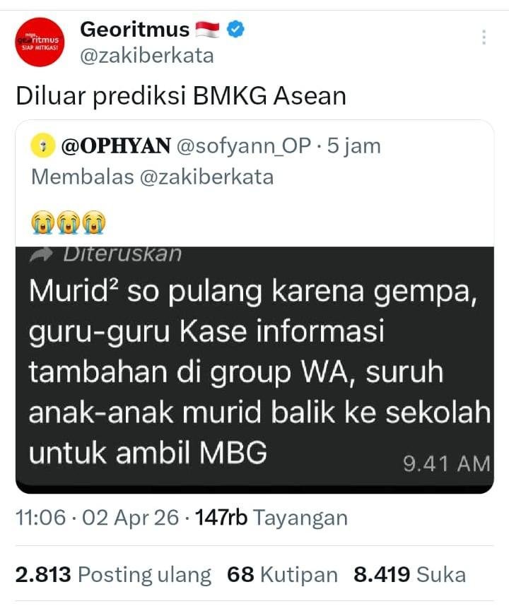 Gempa bumi tapi masih disuruh ambil MBG? benar-benar Diluar prediksi BMKG