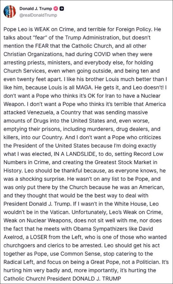 Serangan Trump ini dipicu oleh kritik tajam dari Paus Leo XIV terhadap kebijakan perang pemerintahan Trump, khususnya konflik yang sedang berlangsung di Iran.