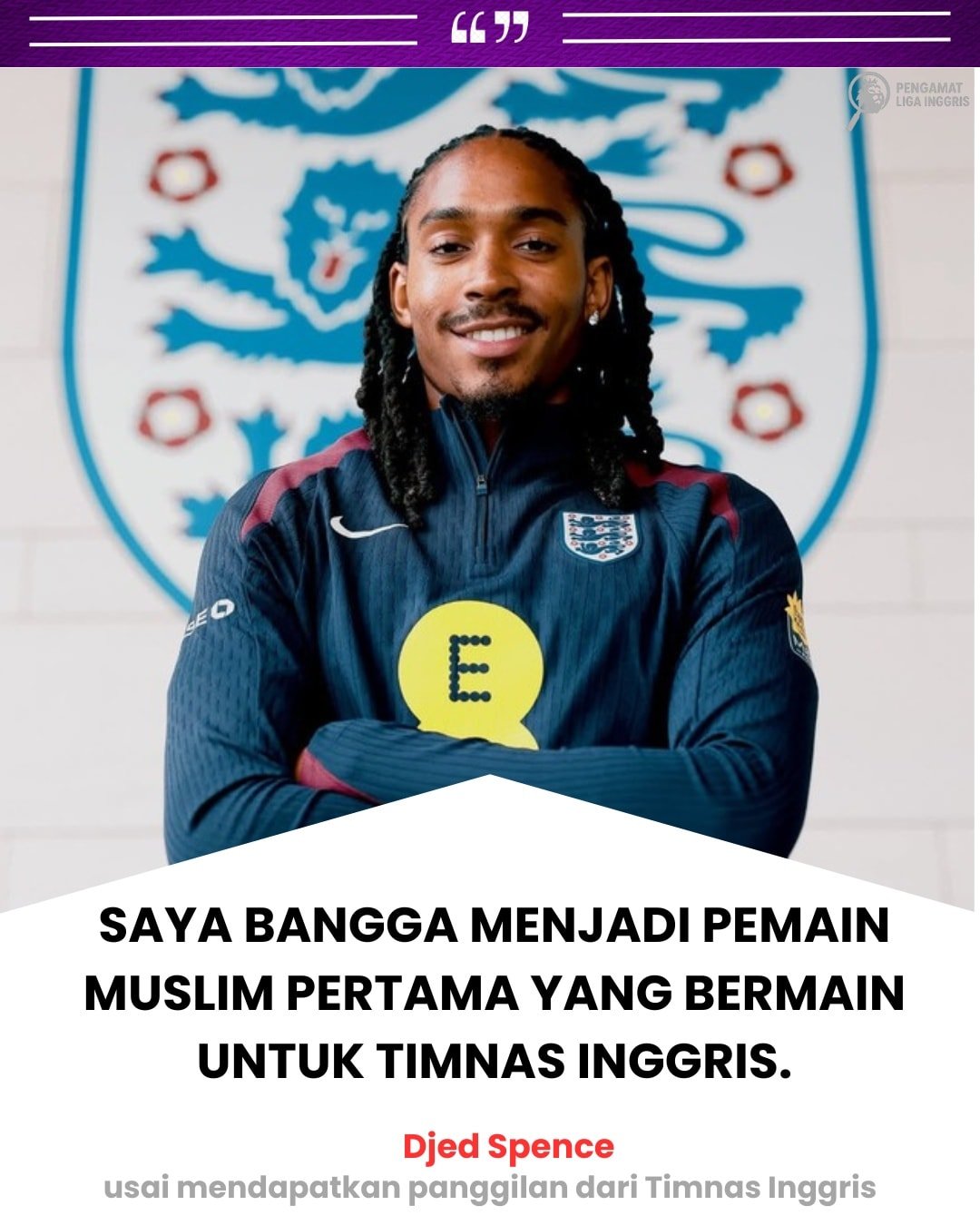 “Saya pernah melihat [informasi jadi muslim pertama] itu. Ini sebuah berkah, luar biasa. Saya memang pernah melihat hal seperti itu. Saya benar-benar terkejut, pertama kalinya [pemain muslim masuk timnas Inggris]. Sungguh luar biasa. Saya benar-benar tak bisa berkata-kata,” ujar Spence dikutip dari ESPN, Kamis (4/9/2025).