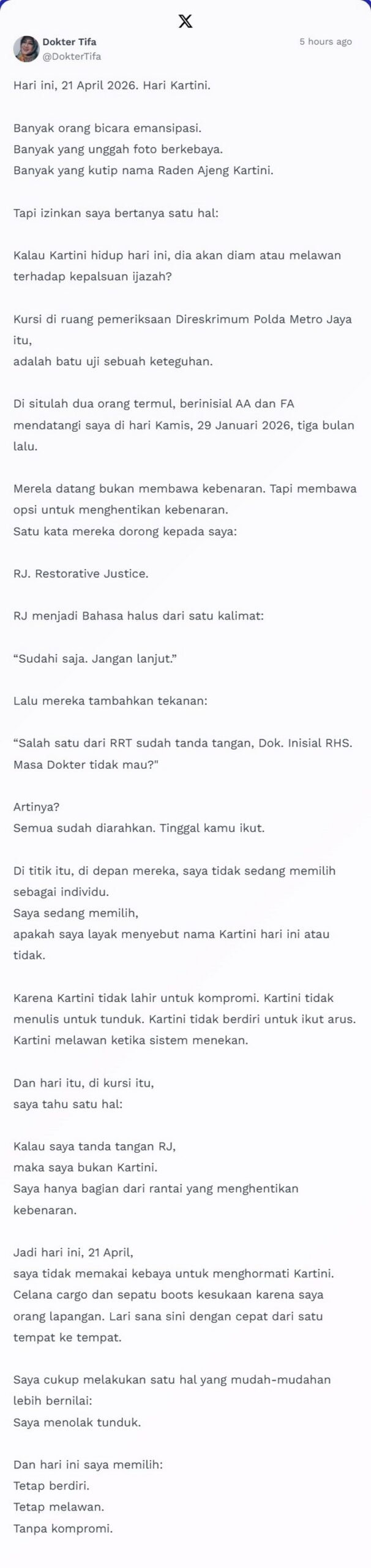 Kalau Kartini hidup hari ini, dia akan diam atau melawan terhadap kepalsuan ijazah?