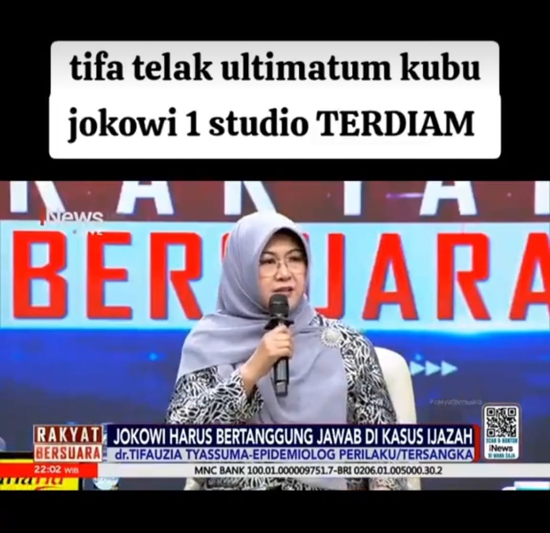 Dokter Tifa mengatakan jika kasus ijazah Jokowi sampai berlanjut ke persidangan di pengadilan maka Jokowi yang akan menderita. Karena yang akan “di uji” di persidangan bukan hanya benda matinya (ijazah), tapi juga benda hidupnya (pemilik ijazah, yaitu Jokowi).
