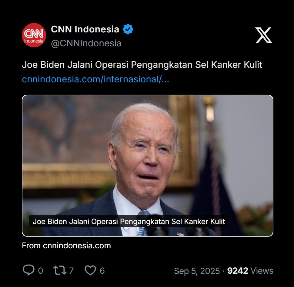 🔴Mantan Presiden AS Joe Biden Jalani Operasi Pengangkatan Sel Kanker Kulit.