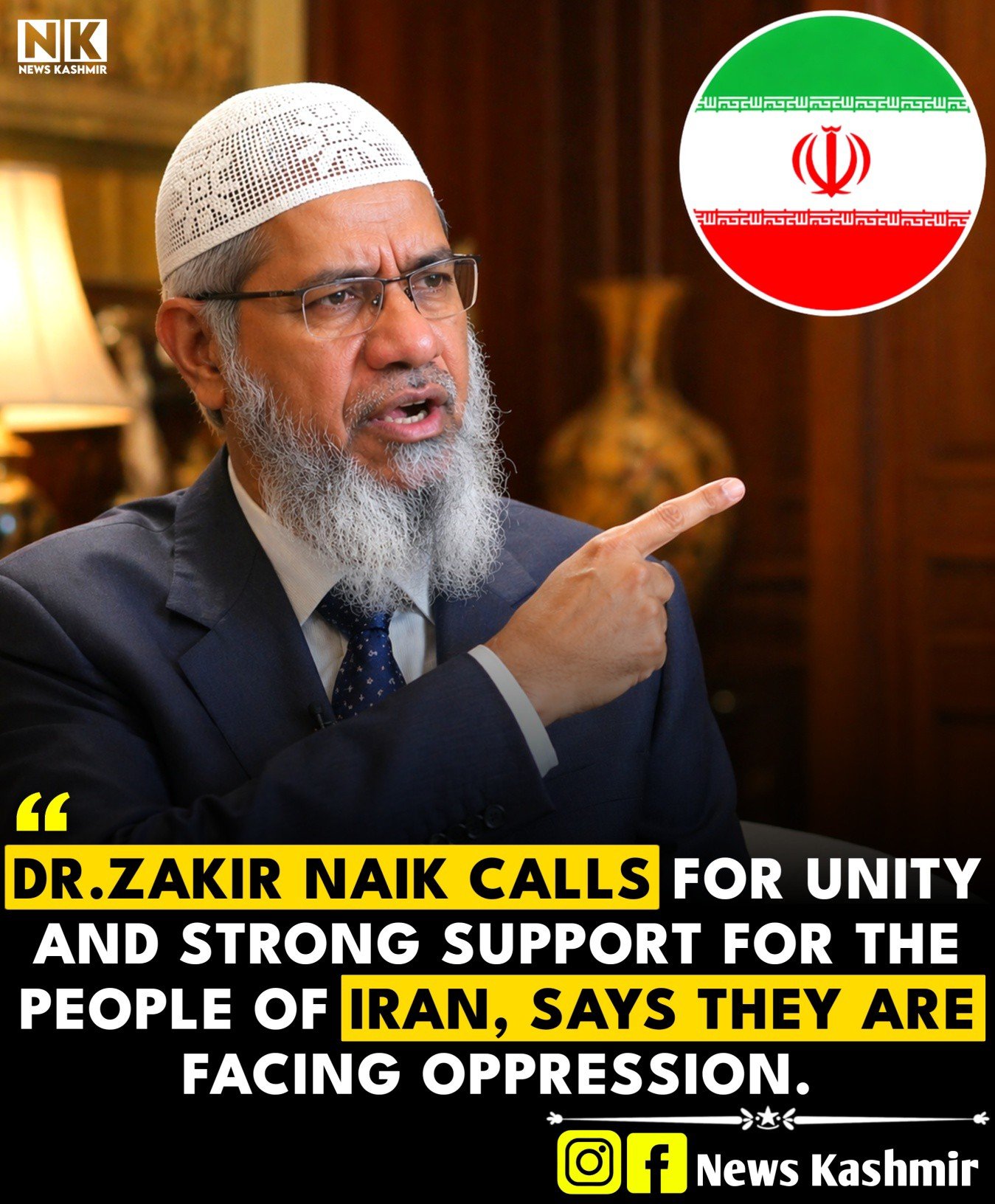 Dr. Zakir Naik, seorang ulama Islam terkemuka, baru-baru ini menyerukan kepada seluruh umat Islam untuk bersatu dan memberikan dukungan kepada rakyat Iran yang ia sebut sedang menghadapi penindasan. 🇮🇷