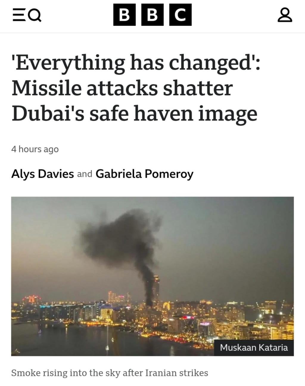 BBC: ‘Everything has changed’: Missile attacks shatter Dubai’s safe haven image