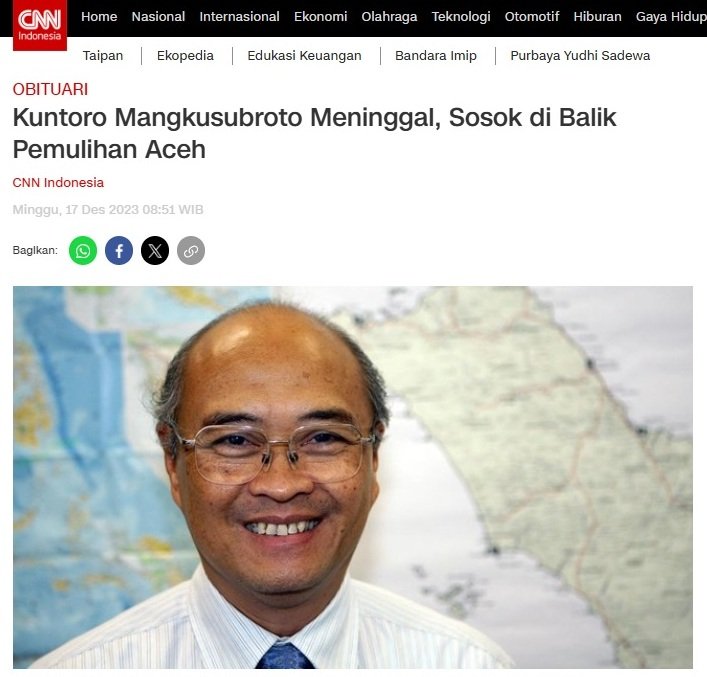 Prof. Dr. Ir. Kuntoro Mangkusubroto, M.Eng memainkan peran sentral dan krusial dalam upaya rehabilitasi dan rekonstruksi Aceh dan Nias pasca-tsunami dahsyat pada 26 Desember 2004. Beliau dikenal sebagai tokoh kunci di balik keberhasilan pemulihan wilayah tersebut.